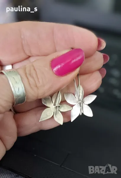 Vintage / Винтидж / Рядка находка / Сребърни обеци на върбило / Цветя / проба 950