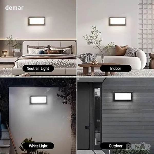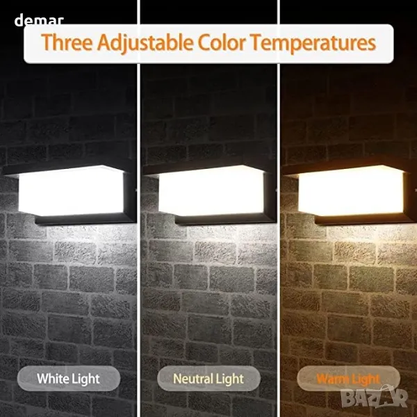Външната стенна лампа предлага три цветови температури: 3000K (топла светлина), 4000K (неутрална светлина) и 6500K (бяла светлина), което ви позволява да изберете и регулирате яркостта според предпочитанията ви. С IP65 степен на водоустойчивост, лампата е защитена от сняг, дъжд и вятър, осигурявайки дълготрайност и предотвратявайки ръждясване или корозия. С размери 27x13.5x13.5 см и тегло 0.8 кг, тя е подходяща за използване както вътре, така и извън дома. Лесна за инсталиране и с дълъг живот, осветлението с 18W LED е еквивалентно на 200W крушка с нажежаема жичка, осигурявайки висока ефективност и яркост. Със съвременния си дизайн, тази стена лампа добавя елегантност към всяко пространство и служи както за функционално, така и за декоративно осветление.