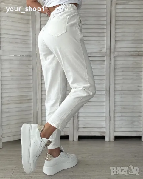 Дамски дънки с ластична талия в бяло mom fit → Обява 49810100