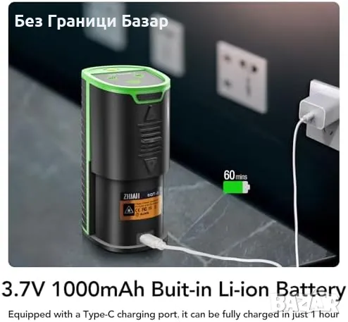 Включва Type-C кабел и батерия 1000mAh – зареждане за 1 час, работа до 5 часа