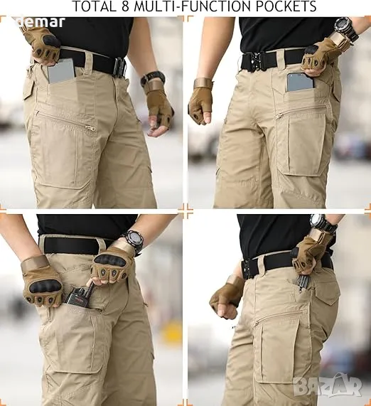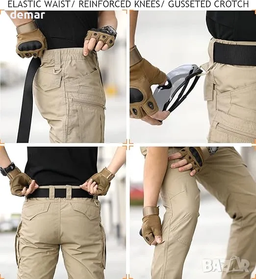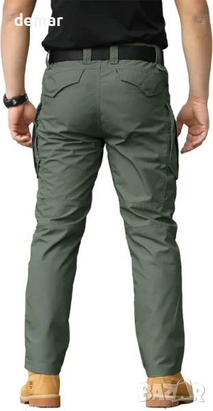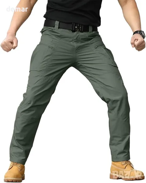 Изработени от смес от 65% полиестер и 35% памук, тези работни карго панталони за мъже се отличават с рипстоп материя с отлична водоотблъскваща обработка, за да ви поддържат сухи през целия ден. Дишащият, устойчив на надраскване и износване материал осигурява издръжливост и гъвкавост. Отличаващ се с ергономичен дизайн, тези панталони включват еластичен колан за удобно прилягане, подсилен чатал и специален дизайн на коляното за подобряване на комфорта и гъвкавостта по време на широк диапазон от движения. Панталонът разполага и с марков метален цип със закопчаване с копчета, разширени халки за колан и издръжлива пластмасова триъгълна халка за окачване на ключове и тактически аксесоари. С 8 джоба, включително предни наклонени джобове, джобове за телефони, големи странични джобове с ципове на бедрото и задни джобове със закопчаване на кука и халка, тези панталони предлагат достатъчно място за съхранение на различно оборудване. Подходящи за тежки операции, тактически дейности, битки на открито и ежедневно носене, тези тактически водоустойчиви панталони са идеални за редица дейности, включително туризъм, лов, катерене, колоездене, риболов, страйкбол, пейнтбол, стрелба, армейски тренировки и ежедневни дейности износване.