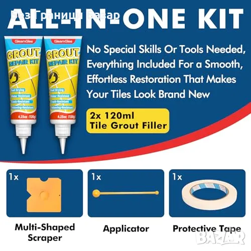 Нов Комплект за ремонт на фуги – 2 броя бял фугин водоустойчив, бързосъхнещ