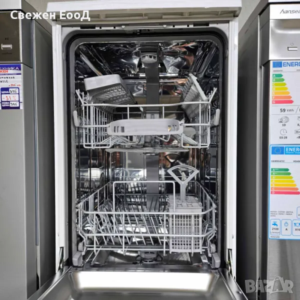 DosageAssist: Осигурява оптимални резултати от почистването и по-тихо измиване. Перилният препарат изтича от дозатора за препарат и в специална тава в горната кошница, където се разтваря напълно.
