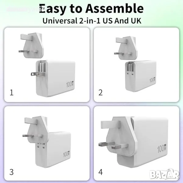 100W USB C Зарядно за Пътуване: Зарежда различни лаптопи и устройства