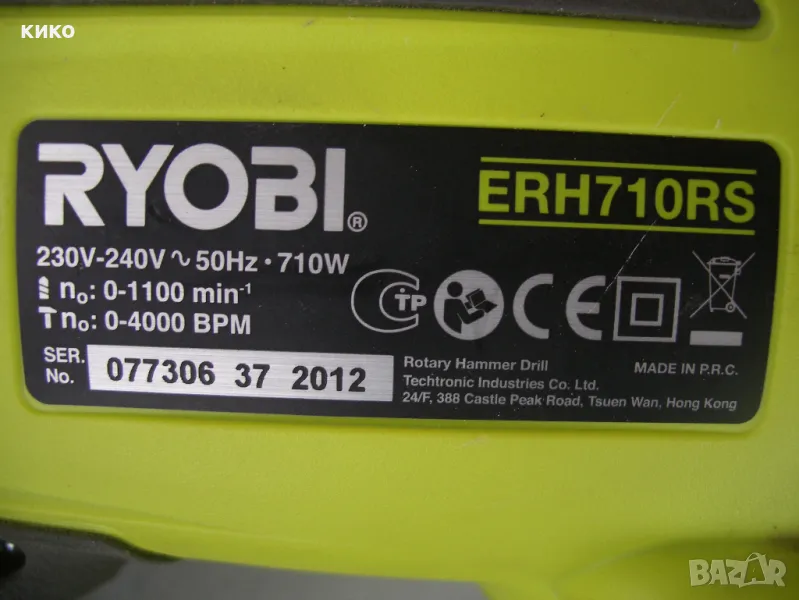 Продавам англииски перфоратор RYOBI ERH710RS .