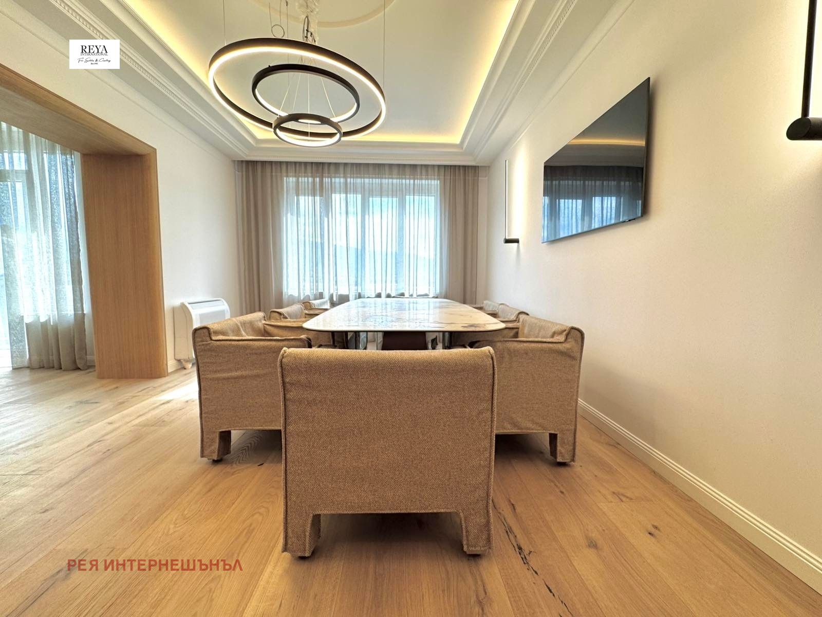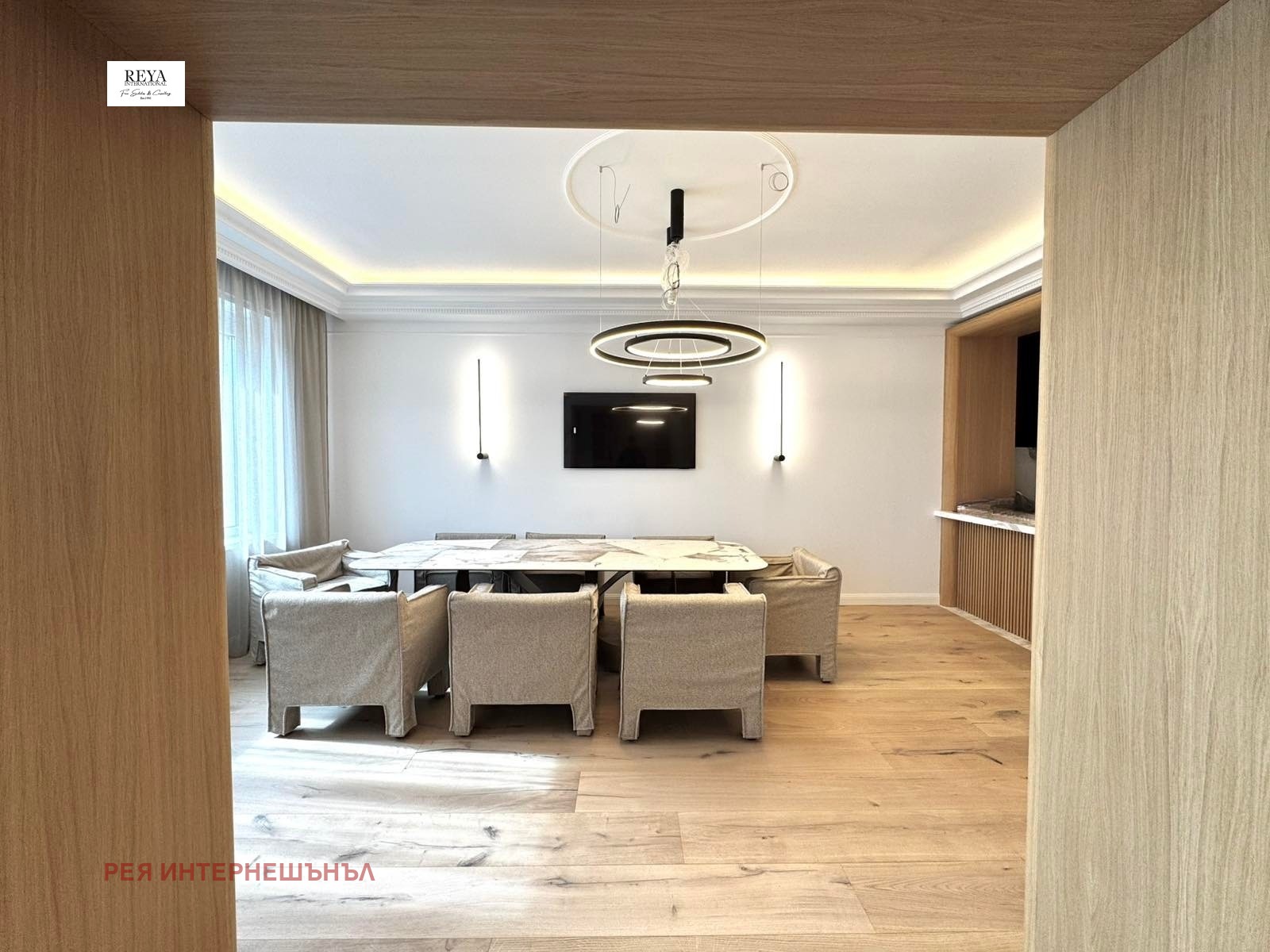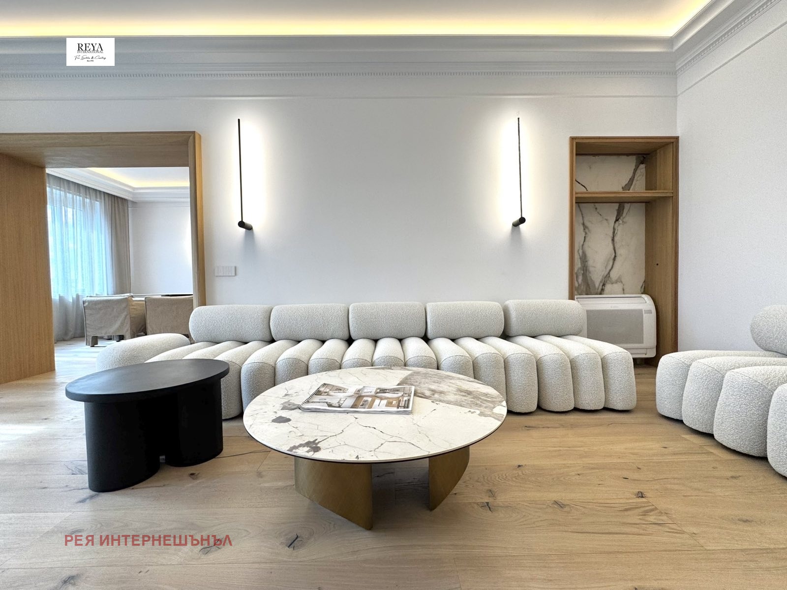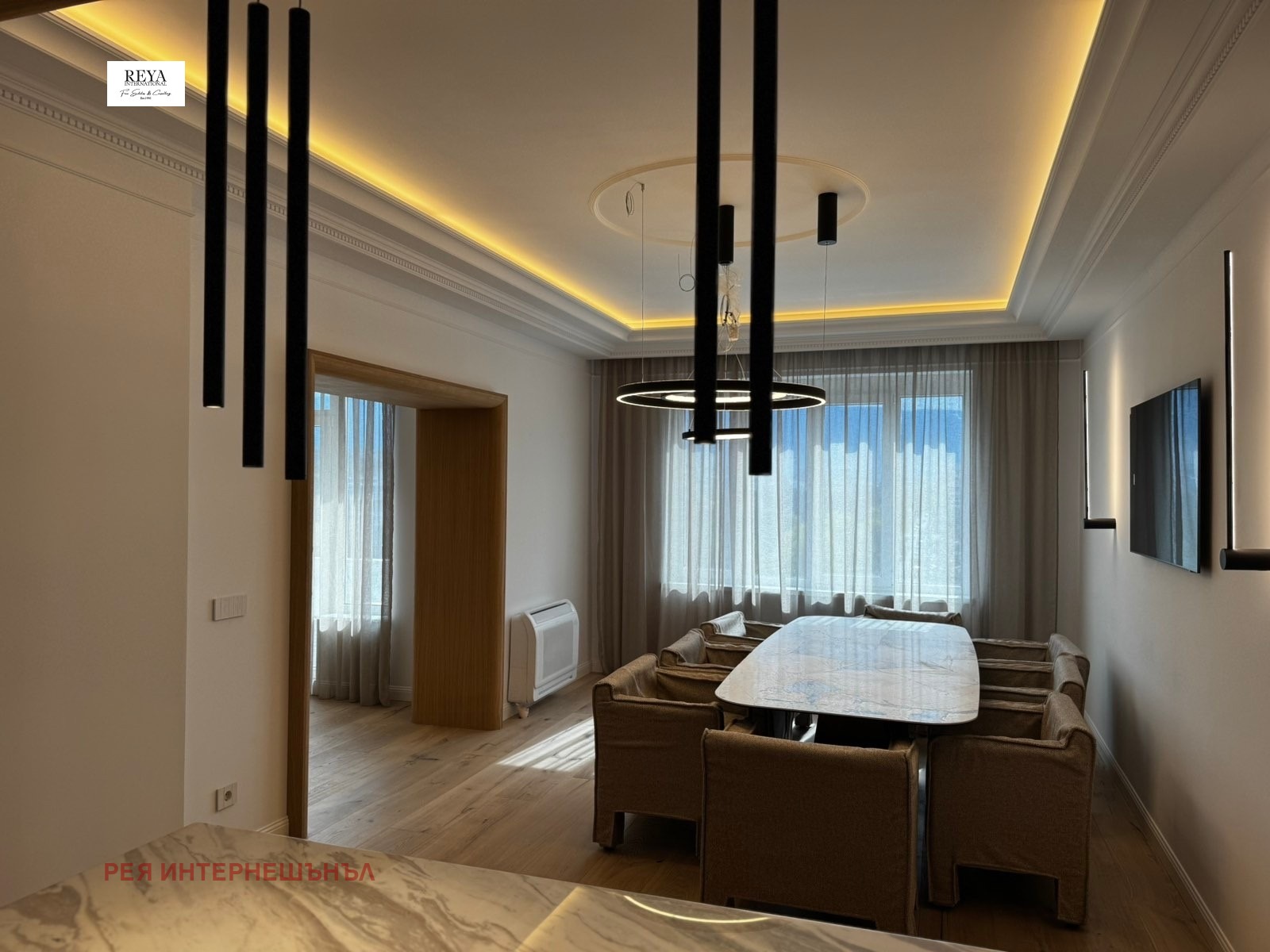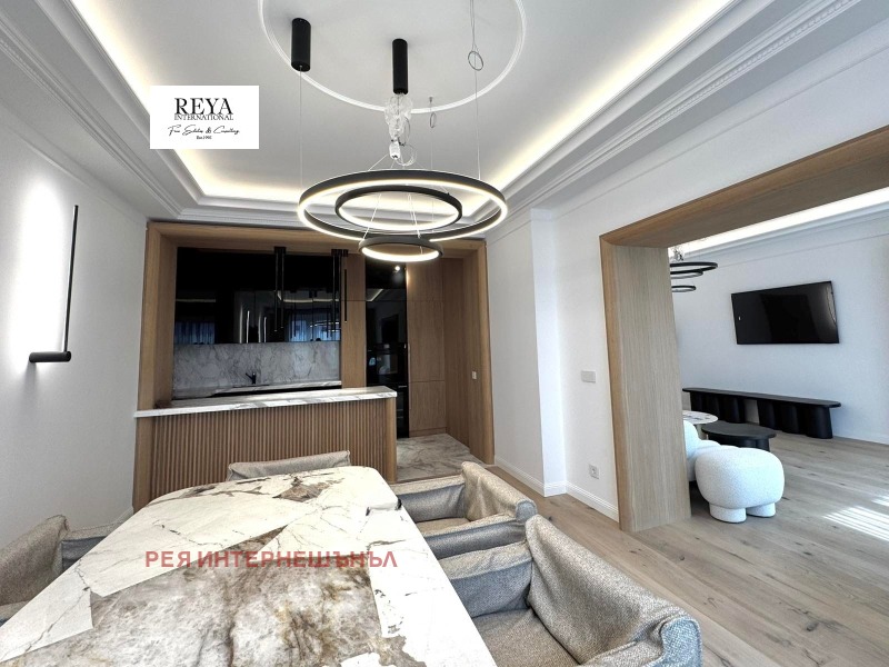 Апартаментът е напълно реновиран с високо качество на довършителни работи и обзавеждане. Във всяка част от имота е вложено внимание към детайлите и са използвани луксозни материали, които гарантират комфорт и естетика.