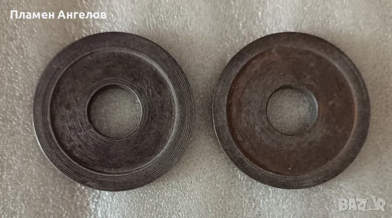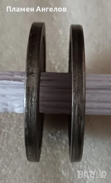 Шайби за монтиране на циркулярени дискове и шмиргили на машинна ос на дорвообработващи машини. Външен диаметър 7.1см.или71мм.Вътрешен диаметър 2.3см.или23мм.,дебелина на едната шайба -6мм.
