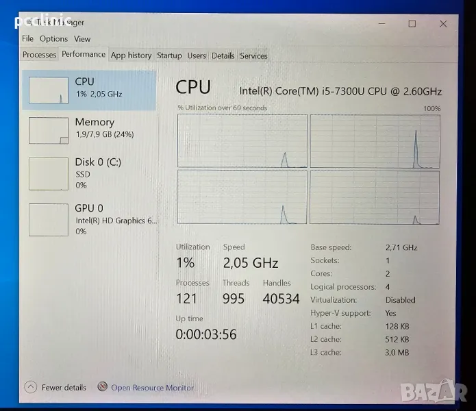 -Процесор - intel core i5 7300U 3.50 Ghz 2 ядра 4 нишки