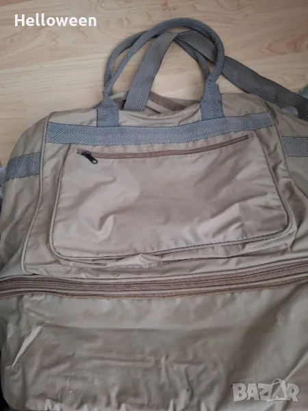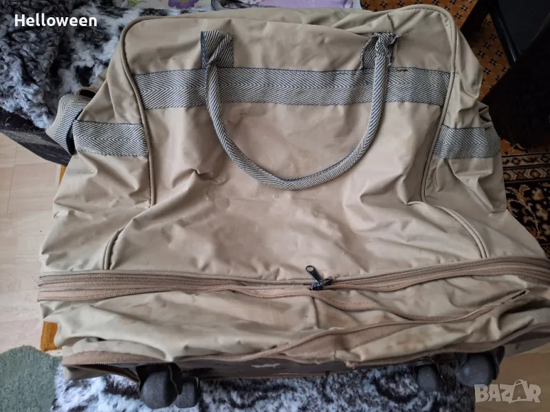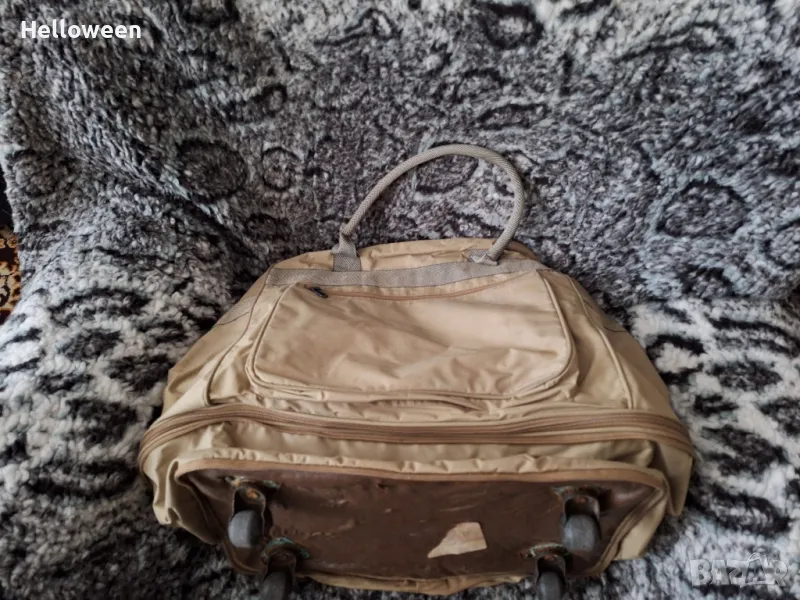 Бежов пътнически сак с колелца - подходящ за ръчен багаж за нискотарифни авиокомпании - в разгънато състояние - х 35 х 20см - 7 лв.