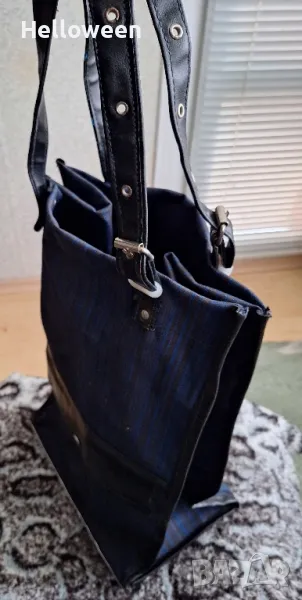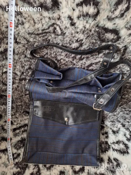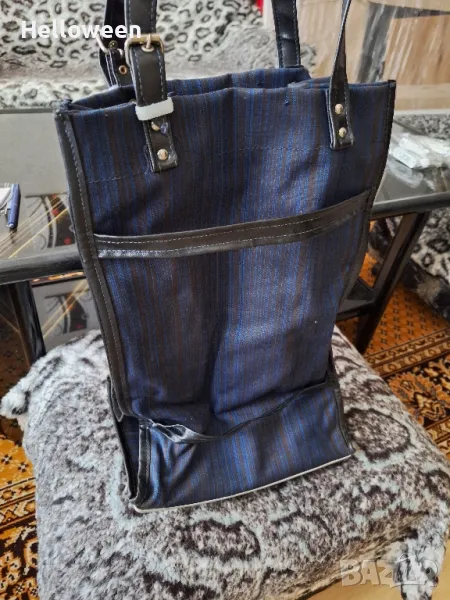 Тъмносин пътнически сак с колелца - с подходящи кожени ремъци за поставяне върху дръжка на голям куфар - 45 х 20 х 10см - 5 лв.