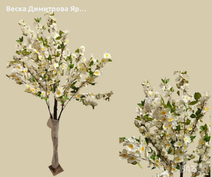 Елегантно изкуствено дръвче, украсено с множество фини бели цветове и зелени листа. Идеално допълнение за интериорни пространства, събития или фотокът.