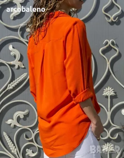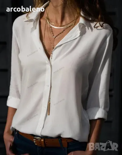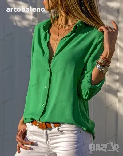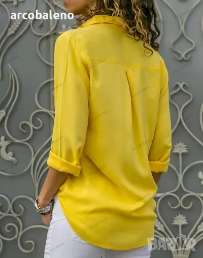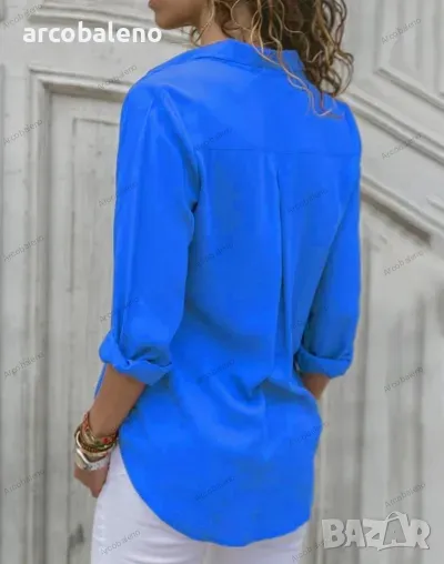 Дамска риза със самостоятелен дизайн с елегантна яка с ревер, 8цвята