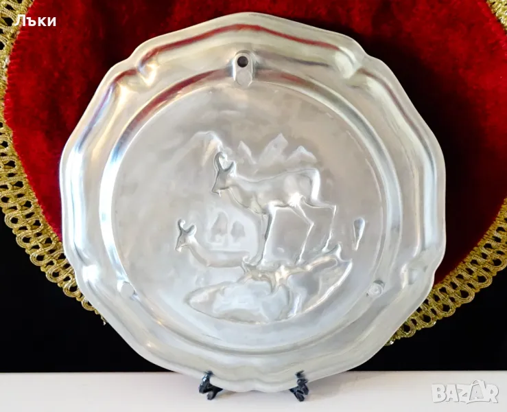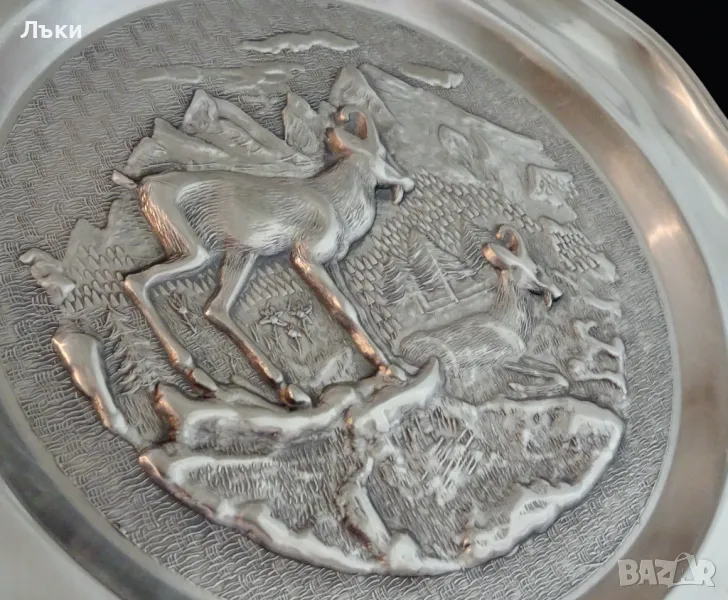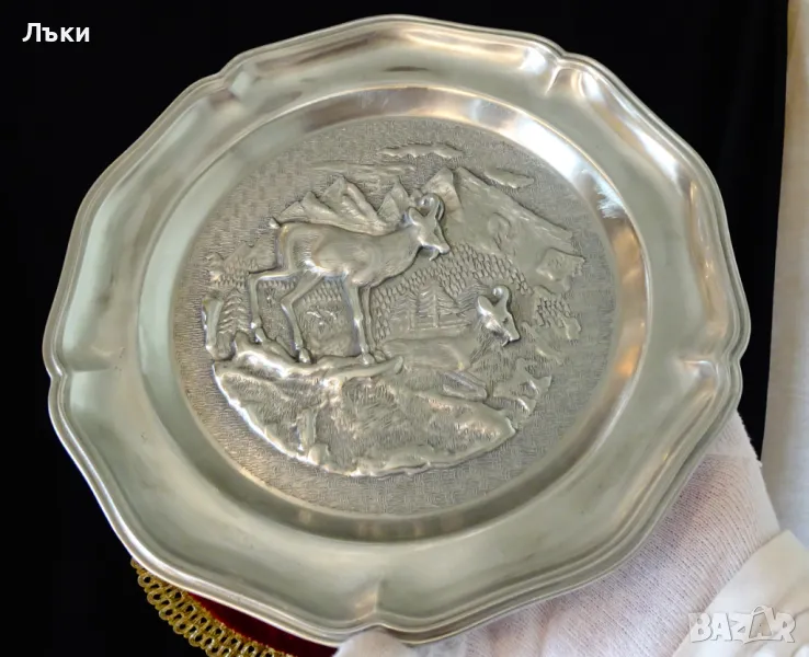 изработка от 95% калай и 5% сребро,маркирано от производителя.В центъра има