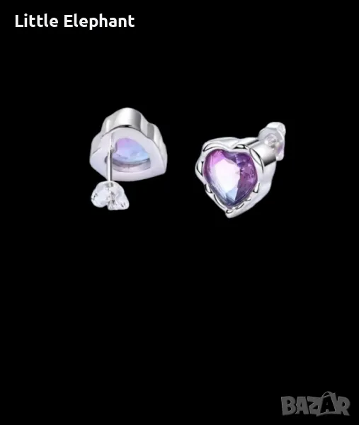 Сребърни обеци сърца"Luxery design jewelry",purple,колекция"Hearts"/нови → Обява 49816921