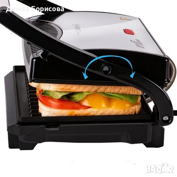 Подходящ за приготвяне на сандвичи, тостове, гриловане на зеленчуци и меса, както и за запичане и подгряване на питки.