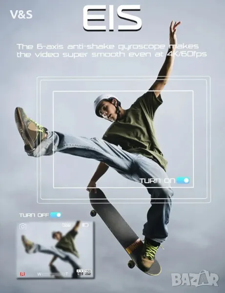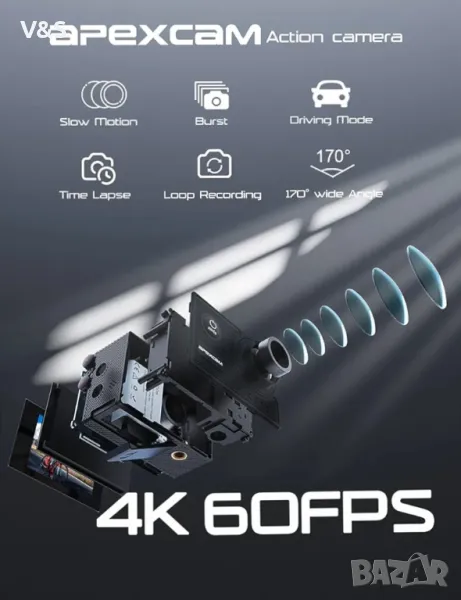 Apexcam X60Pro екшън камера разполага с 4K/60fps видео и 20mp изображения; Вградена електронна стабилизация на изображението (EIS) с 6-осен жироскоп, функция за калибриране на изкривяването осигурява доста богати цветове и плавни движения, улавя всички чудеса на света във фантастична резолюция.