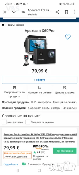 Екшан камера Apexcam X60 Pro, 4K, 60FPS, 2" LCD, Wi-Fi,