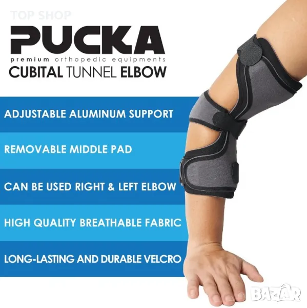 Лакътната скоба Pucka Cubital Tunnel Elbow Brace предлага регулируема опора, предназначена да облекчи натиска върху улнарния нерв, което го прави идеален за предотвратяване на хиперекстензия или като имобилайзер след операция. Той разполага с 20-градусов регулируем ергономичен дизайн за удобна опора, която минимизира прекомерното огъване на лактите по време на ежедневни дейности и сън. Предлага се в два размера, STD1 за малки до средни ръце (22-26 см) и STD2 за големи до изключително големи ръце (26-32 см), осигурява плътно прилягане с висококачествени, издръжливи велкро ленти и огъващ се алуминий поддържаща лента. Тази лека скоба стабилизира ръката, особено полезна през нощта, когато симптомите на кубиталния тунел могат да се засилят. Освен това е лесен за почистване, като поддържа над 1000 употреби, без да губи сцепление.
