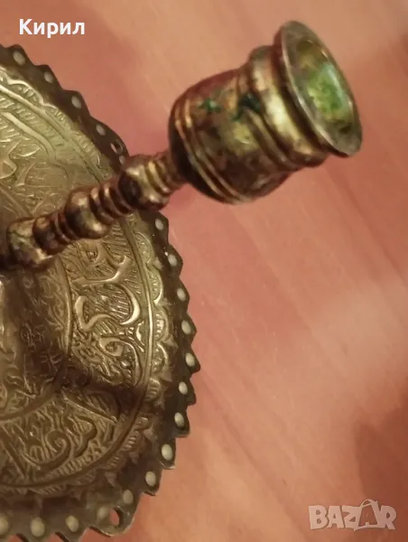 арабски гравиран месинг, свещник за 1 свещ, чиния → Обява 49820183