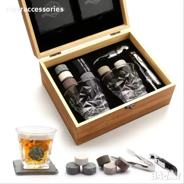Подаръчен комплект за уиски в дървена кутия – Лукс и стил