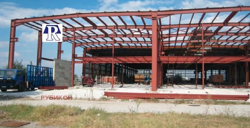 The building consists of three metal halls for commercial, warehouse, exhibition and production activities. The width of each hall is 18m. The length is 108m. The height to the edge of the roof is 11.20m. and the maximum height is 14.20m. The built-up area is 6034 sq.m. In the front part of the 2nd floor there is an administrative part. Total developed built-up area is 6564 sq.m. For the rough construction of the building, Act No. 14 was drawn up for acceptance of its construction. It was filled in the cadastral map of the city of Plovdiv. To service the halls, the following were built: about 2000 sq.m. of asphalt roads, 420 m. of site electrical cable network with pulled power cables and shafts, 630 m. of site sewage with 19 shafts, 1050 m. of site water pipes Φ200 and Φ160 with 10 shafts, 2 borehole wells with depths of 85 m. and 87 m. with borehole diameter 1000/400, with installed submersible pumps and control, put into operation by the Basin Directorate of the South Central Region of Plovdiv.