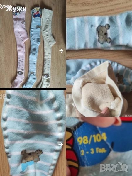 НОВИ детски чорапогащници 98 см 104см,весели и топли , отвътре с топъл каракул . Цена е за брой 6, 50 лв. НОВИ чорапогащници размер 122 128 ,комплекта съдържа три броя, цена за комплекта 10,50 лв.СЛЕДВА чорапогащник един брой, размер 104 -110 см цена 3,90 лв. СЛЕДВАТ комплекти от два броя чорапогащника ,на всяка снимка има даден размер, цена за комплекта от два броя 5,90 лв.