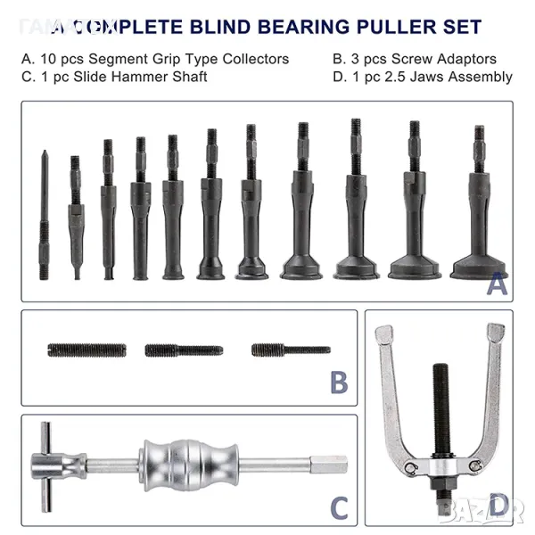 Екстрактори за избиване на лагери с обратен чук – 16 части, 50148