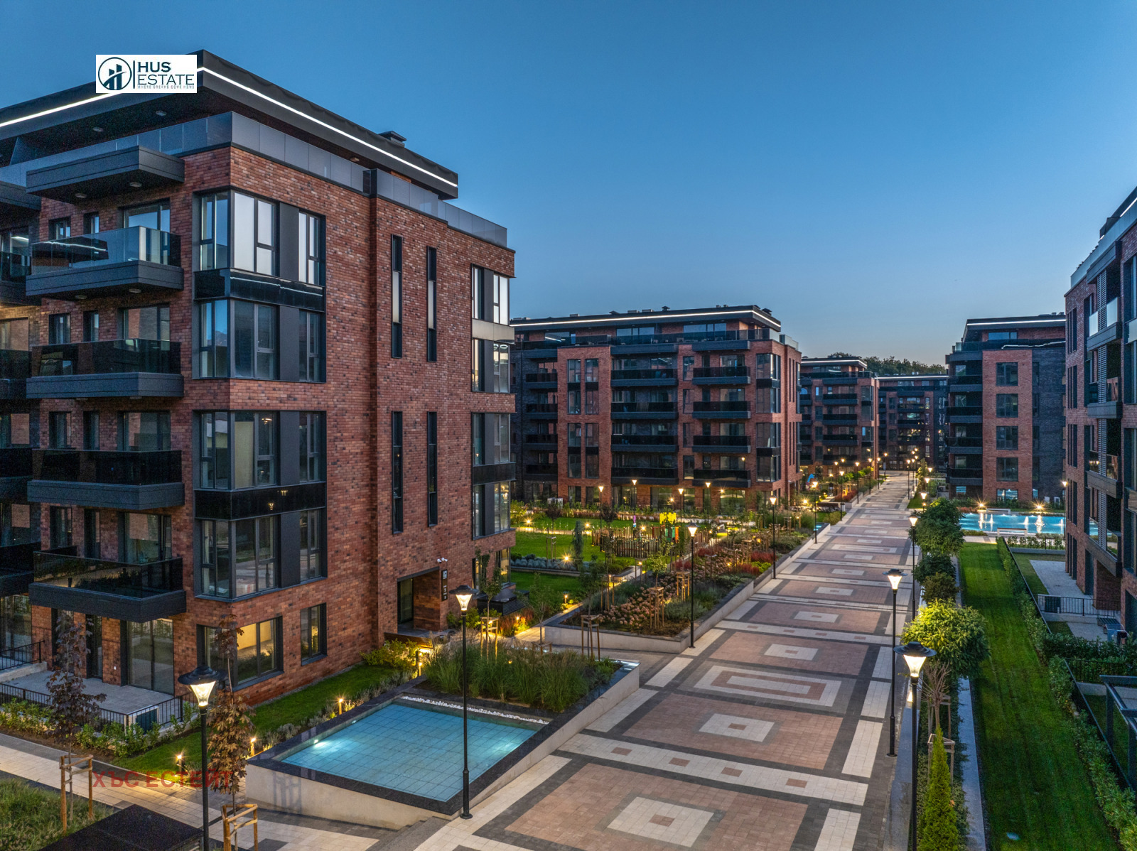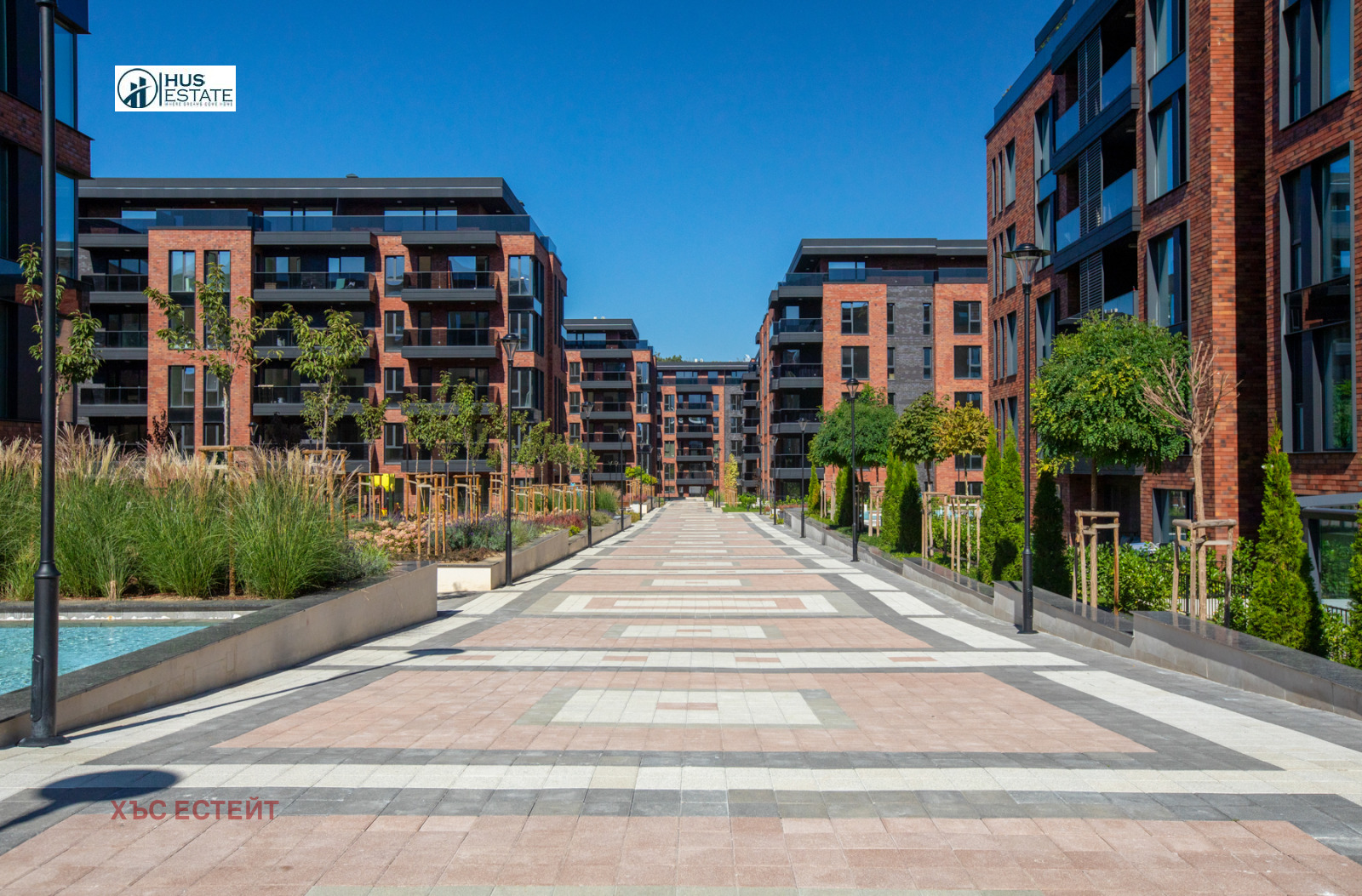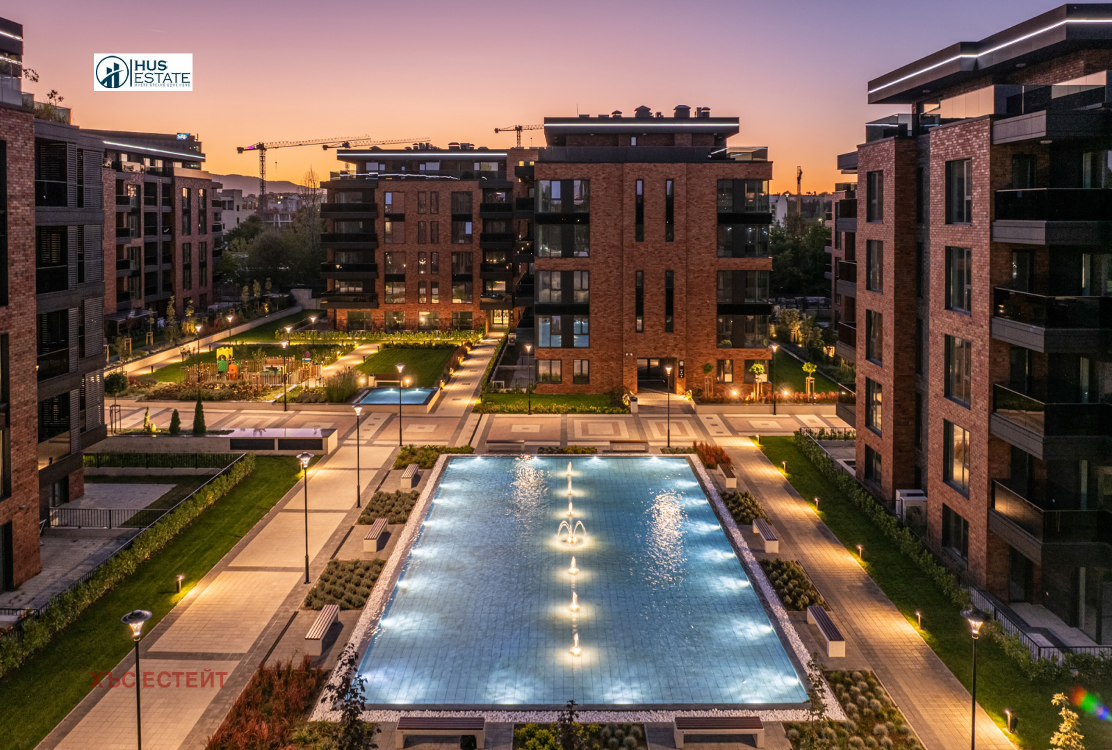 Вътрешният двор на комплекса е над 30 декара, изцяло пешеходен, в който са разположени общо 9 детски площадки, за различни възрасти.