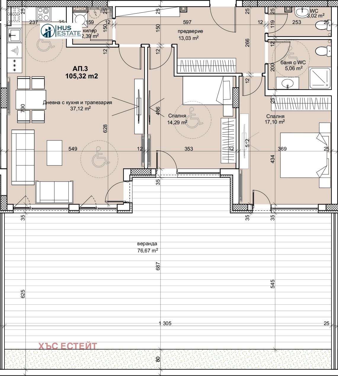 194 броя апартамента с 1, 2 и 3 спални