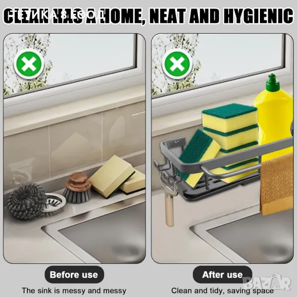 Без пробиване: висящ органайзер за мивка, без инструменти, без пробиване и няма да повреди външната страна на стената;