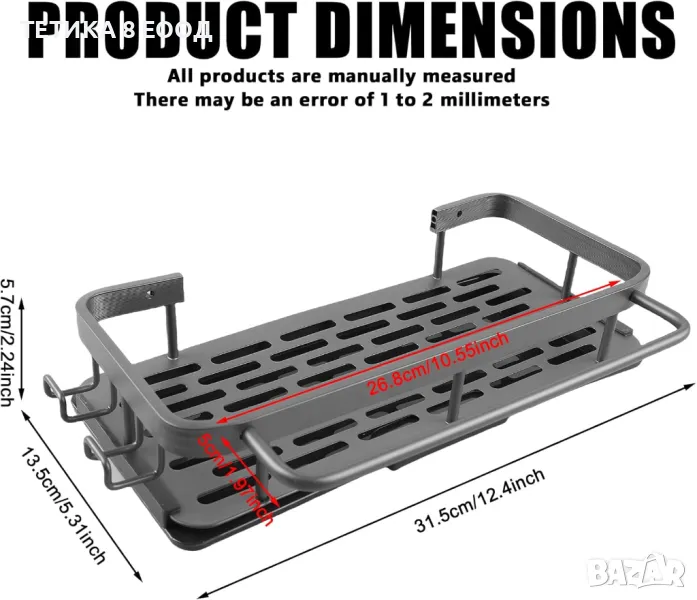 Лесен монтаж: почистете повърхността, залепете лепилото към стената и окачете рафта. Подходящ за гладки повърхности като плочки/мрамор/стъкло/метал, но не и за неравни повърхности като боядисани стени;