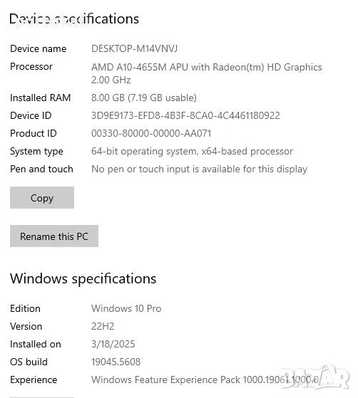 Операционна система: Да, Windows 10 Pro