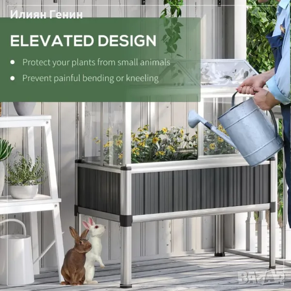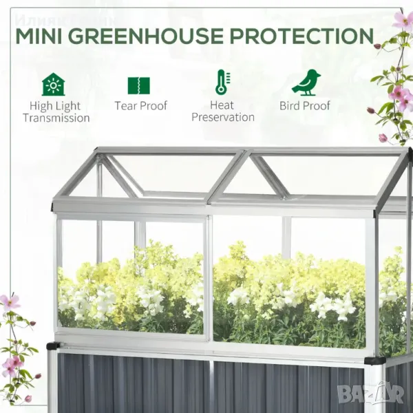 Повдигнато дъно на саксия, комбинирано с горна оранжерия. Отглеждайте цветя, растения, зеленчуци и др