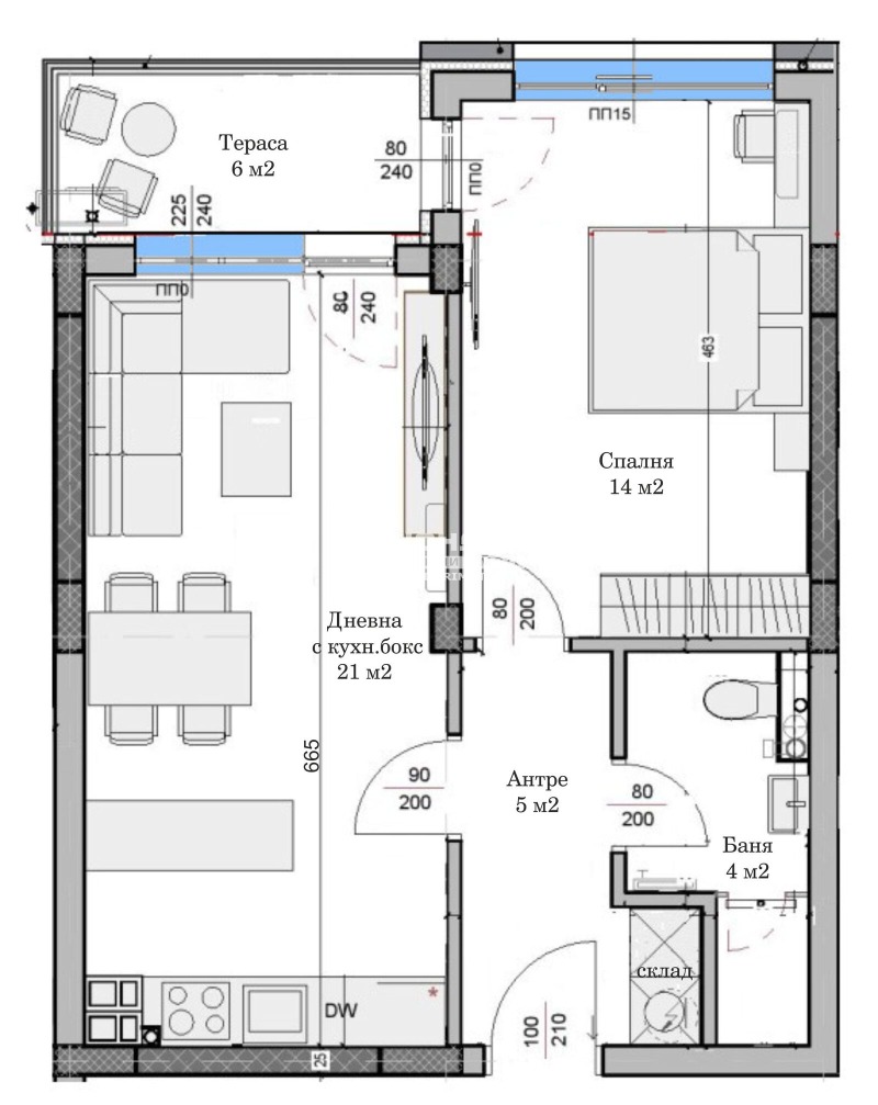 Оферта 66670: Предлагаме Ви функционален двустаен имот с перфектно разпределение в нова модерна сграда със собствен стил, изчистена визия, проектирана така, че да създаде максимален комфорт и уют за живеене. Проектът предвижда нискоетажно жилищно строителство, в съответна близост до основни комуникации в един от най-бързо развиващите се райони. Жилището се състои от дневна с кухненска част, една самостоятелна спалня 14кв.м., входно антре, баня с тоалетна и една обща тераса. Сградата се изпълнява от една от водещите строителни компании, наложила се на пазара с множество готови обекти, изпълнени с изключително високо качество и прецизност. Възможност за разсрочено плащане в рамките на строителството , както и възможност за закупуванечрез Банков Кредит с изключително изгодни условия за клиенти на агенция Кондор !!! СВОБОДНИ ПОДЗЕМНИ ГАРАЖИ и ПАРКОМЕСТА !!!ВИЖТЕ ОЩЕ ИЗГОДНИ ОФЕРТИ НА https://www.kondorimoti.com/ С ЕЖЕДНЕВНА АКТУАЛИЗАЦИЯ!