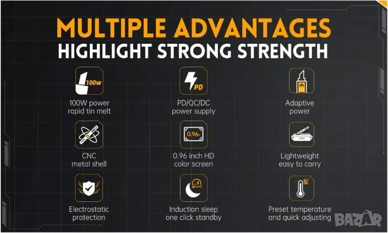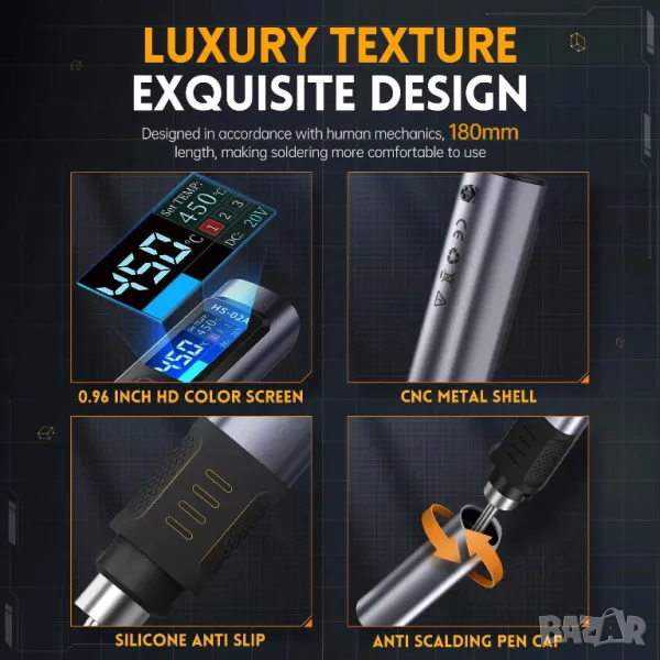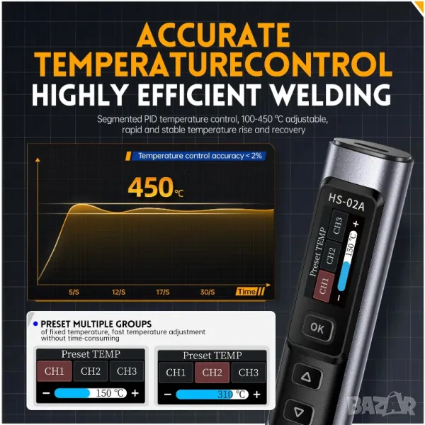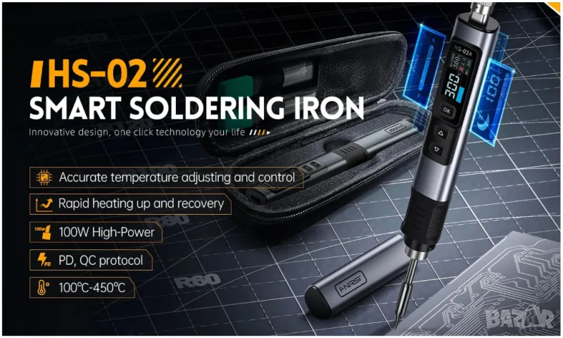 Електрическият поялник HS-02 Smart съчетава висока производителност, скорост и прецизност, той просто притежава всички характеристики на преносим поялник за професионална употреба.