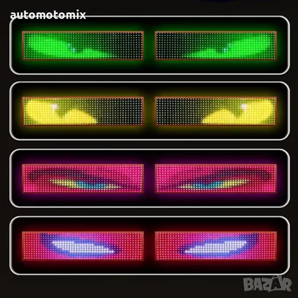 Представяме Ви иновативен комплект LED динамични светлини тип "очи", предназначен да придаде уникален и модерен външен вид на всяко превозно средство. Светлините са особено популярни сред шофьорите на камиони, но също така са напълно подходящи и за бусове, джипове и леки автомобили. Системата се управлява изцяло чрез безжично дистанционно и предлага богат избор от светлинни ефекти, цветове и настройки, които позволяват пълна персонализация спрямо предпочитанията на водача.