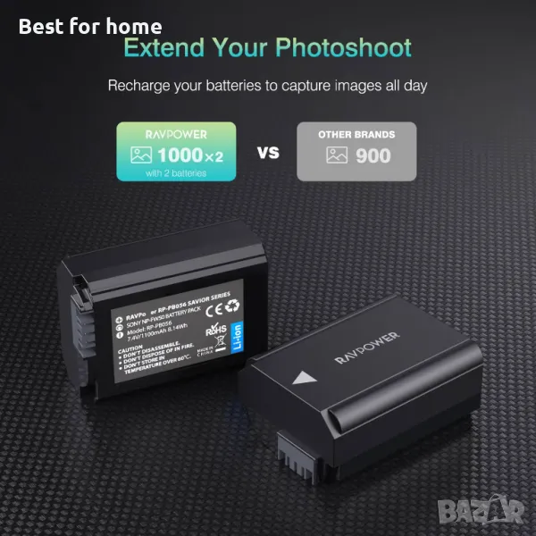 Комплект зарядно устройство с батерии за фотоапарат Ravpower
