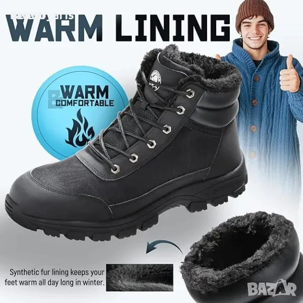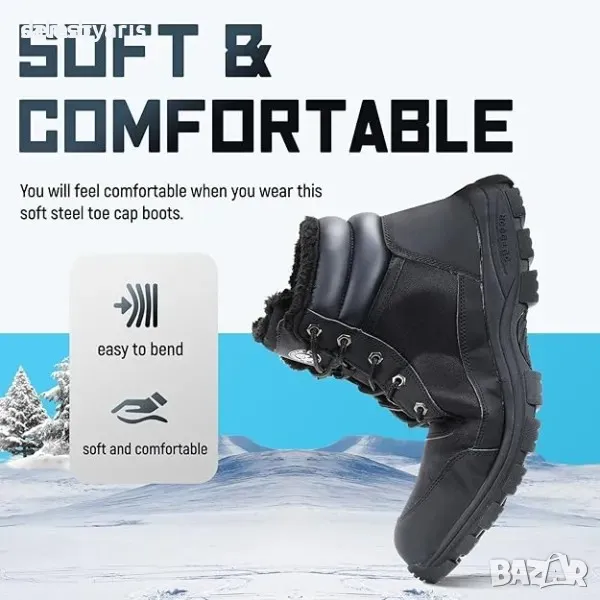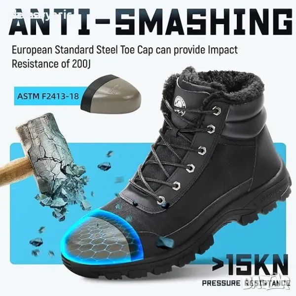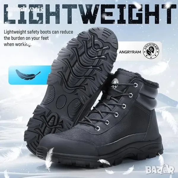 ANGRYRAM Сигурни боти: Черни работни боти с лека стоманена капачка, подходящи за зимата. Тези сигурни обувки осигуряват комфорт и защита, като същевременно са леки и удобни за носене.