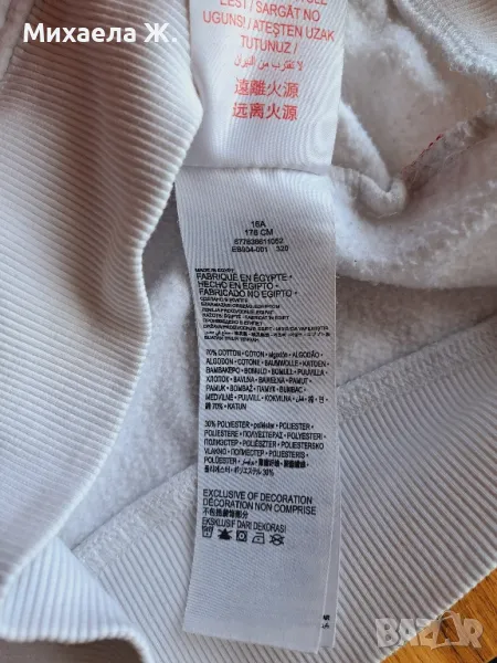 Чисто бяло худи, поларено отвътре, с голям преден джоб. S размер.