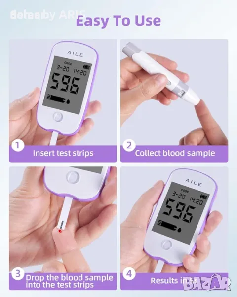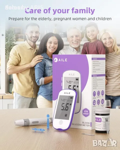 AILE Комплект за измерване на кръвна захар: 50 тест ленти и ланцети