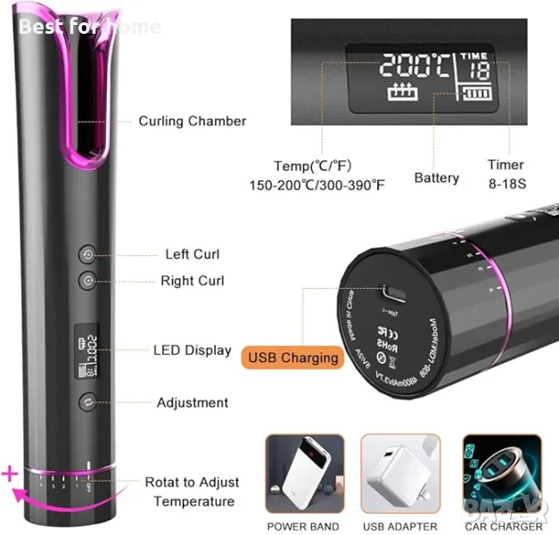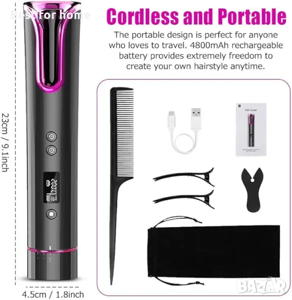 1 час работа без зарядно устройство с 3 часа пълно зареждане (4800mAh). И можете лесно да зареждате машата за коса с USB-C порт за зареждане. Направете здрави и гладки лъскави къдрици навсякъде.