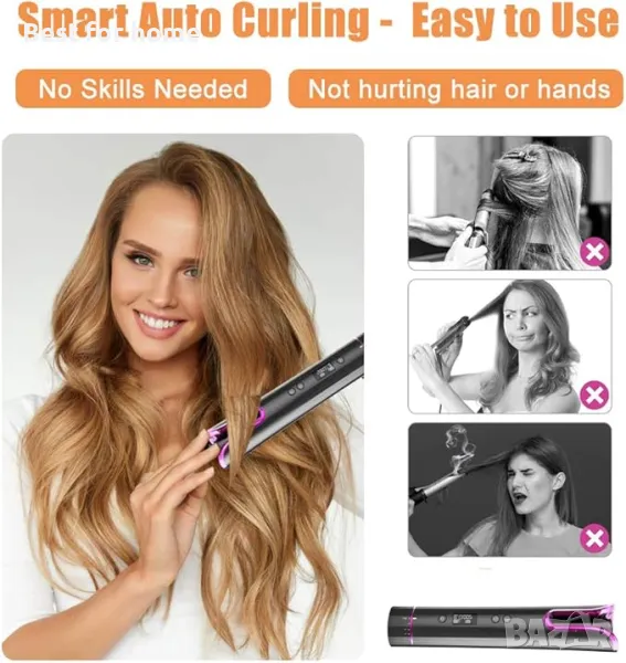 Безжичният дизайн ви освобождава от търсене на контакт или борба с кабела, който постоянно се заплита по пътя. Няма нужда от няколко тръби за къдрене, просто поставете косата си в тръбата за къдрене и натиснете бутона, за да накъдрите косата си естествено, без никакви умения, просто и бързо.