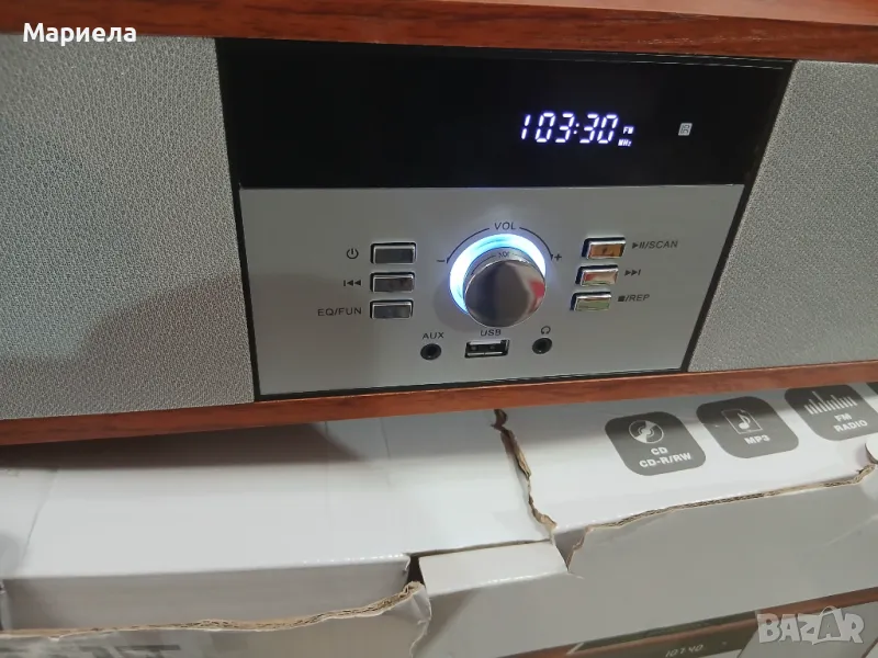 Микромедиен плейър „всичко в едно“: Bluetooth безжична система от високоговорители и CD и MP3 плейър и USB и слушалки и AUX вход и FM радио. MP3/CD плейър стерео система.