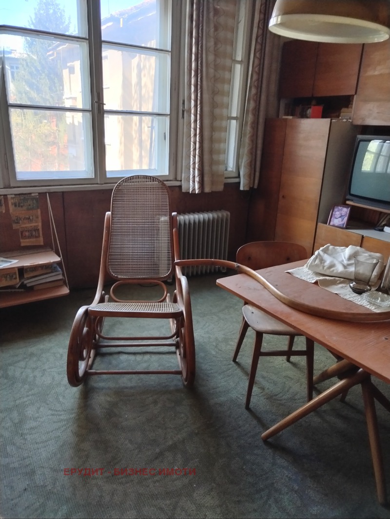 ЕРУДИТ-недвижими имоти предлага за продажба 2-ри етаж от къща в идеалния център на града, на метри от Александровска. Имотът е със следното разпределение: голяма кухня-дневна, хол, спалня, две тераси, отделни баня и тоалетна. Над имота има прилежащ мансарден етаж със санитарно помещение, което може да се преустрои за живеене или за творчески дейности. Към имота има и две избени помещения, както и идеална част от двора, където могат да се обособят паркоместа. Къщата е стоманенобетонна конструкция, покрива е ремонтиран.