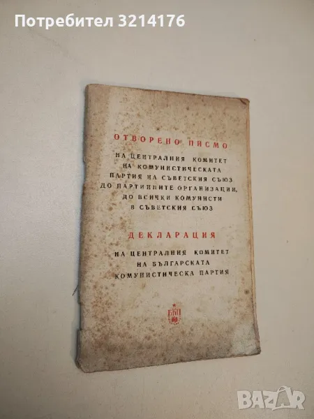 Отворено писмо на Централния комитет на Комунистическата партия на Съветския съюз до партийните организации, до всички комунисти в Съветския съюз. Декларация на Централния комитет на Българската комунистическа партия - Колектив 0,50лв.