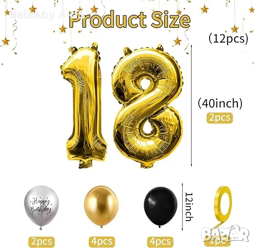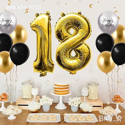 Златни Балони '18': 40 инча, за 18-ти Рожден Ден, Злато-Черни и Сребърни