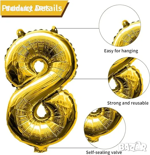 Отпразнувайте своя специален ден с този луксозен комплект балони за 81-ви или 18-ти рожден ден, предназначен да добави нотка елегантност към вашето парти. Комплектът включва 2 бр. 40-инчови златни балони с числа (1 и 8), 4 бр. 12-инчови метални златни балони, 4 бр. 12-инчови черни балони, 2 бр. и 1 бр от 32 фута златна лента за къдрене. Изработени от висококачествено алуминиево фолио и латекс, тези балони са издръжливи, херметични и за многократна употреба, което ги прави идеални за създаване на незабравимо тържество. Безопасни, нетоксични и екологични, те са лесни за надуване с въздух или хелий (моля, имайте предвид, че хелият не е включен) и са предназначени за многостранна употреба при различни парти теми и поводи. Независимо дали за рожден ден, годишнина или друго празнично събитие, тези балони могат да бъдат персонализирани, за да паснат на вашето уникално тържество. Не забравяйте да надувате внимателно, избягвайте остри предмети и осигурете надзор за безопасността на децата.