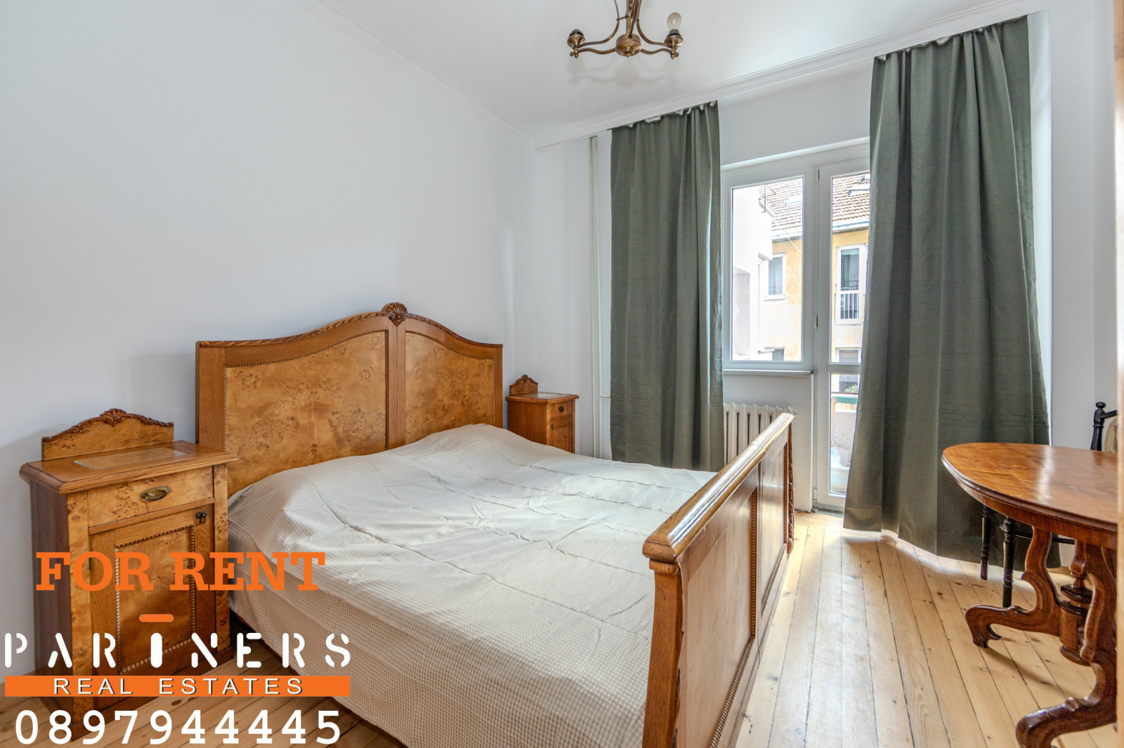 Чудесна възможност да обитавате аристократичен апартамент с антични мебели, запазили духа на една отминала епоха. Жилището е напълно обзаведено и оборудвано, като има възможност час от мебелите да бъдат отстранени. Оригиналното му разпределение предлага: Дневна с вестибюл/трапезария, хол, кабинет, две самостоятелни спални /едната с тераса/, кухня с балкон, баня с тоалетна и отделна тоалетна. Възможно е обособяване на трета спалня с портални врати. Отоплението и топлата вода са осигурени посредством централен ТЕЦ, кооперацията е цялостно санирана по програма с контролиран достъп, хигиенист и общите разходи са минимални. Апартаментът е ситуиран в непосредствена близост до ул. Шипка и Парк Военна академия 'Г.С. Раковски', с удобен транспорт към всички точки на града. Дългосрочни и коректни наемни отношения. Н. Парушев 0897944445