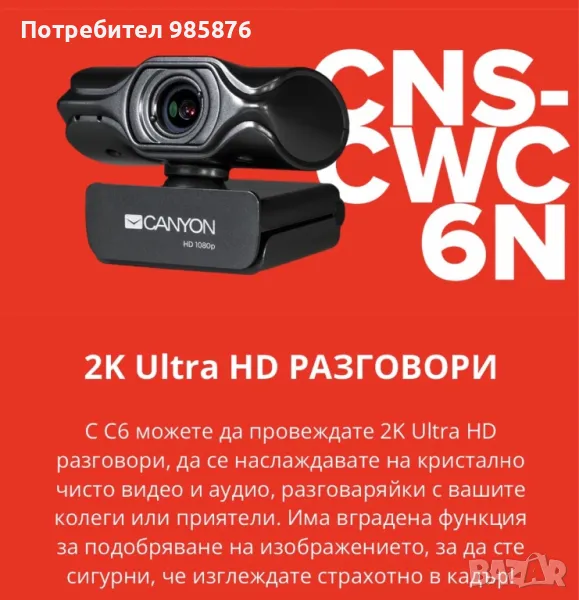 2K Quad HD уебкамера за стрийминг "на живо" C6