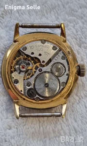 Работещ ! Ultra slim RAKETA позлатен мъжки ръчен часовник от миналия век СССР 1960
